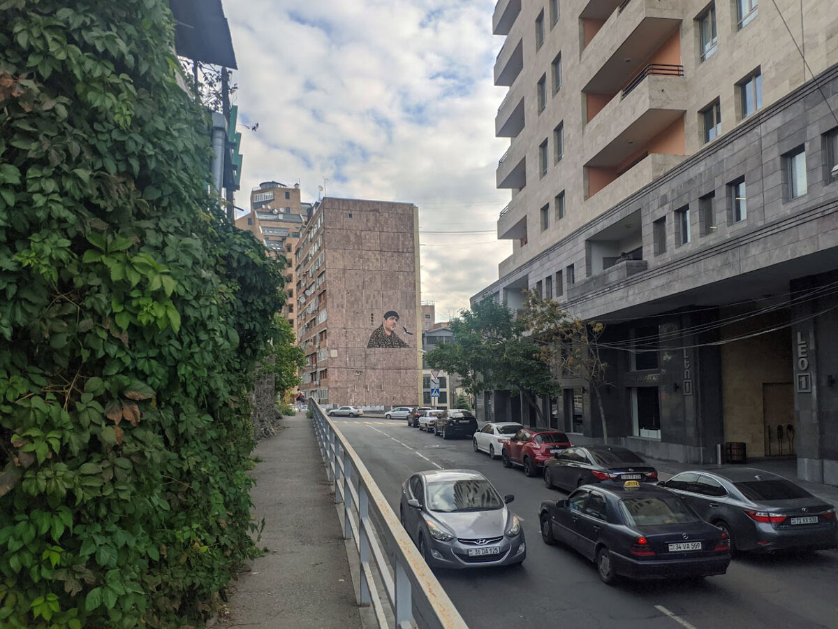 Ура, я дошла до 9-го дня. Напоминаю, у нас были запланированы выезды вокруг Еревана. По отпускной ))) привычке мы проснулись вскоре после 7, повалялись ещё. В принципе можно было б и поехать, но так рано найти еду для завтрака оказалось проблемно. Шуруп нашел в инете кафе «де Пари», уже открыто и недалеко. Агащаз! Пошли, а оно закрыто. Пришлось искать дальше. Так и пошли по той улице, на которой гостевой дом стоял – как раз справа многоэтажные дома (а всё равно из туфа), а слева – частные. Свернули с неё в небольшой парк (хи, я б сказала «сквер», парк – слишком громко сказано. Но так на карте. Имени Дианы, чорд, фамилию забыла, лень искать заново. Деревьев в парке мало, зато фонтаны и фальшивые топиару. Солнечные фото – это мы уже обратно идём. Топиару мы все успели пересмотреть, там кроме рояля – и медведи, и слон, и ангел, повозка с лошадками… Но раз растения не настоящие, то не буду все показывать. Вот – с жирафом и даже с мини-детской площадкой. Ребёнок тут завис, хотела в домике