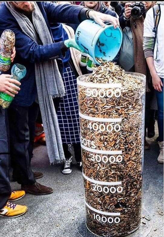 В местах курения- урны в форме органов (лёгких и печени..) страдающих от табакокурения.