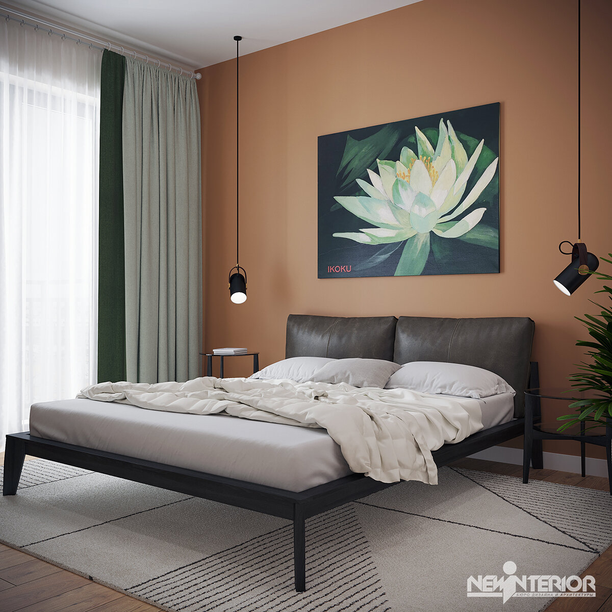 Представляем вам наш новый проект интерьера! Это квартира общей площадью 100 квадратных метров расположенная в Санкт-Петербурге в ЖК Гранд Хаус. Заказчики уже были нашими клиентами и мы им сделали интерьер квартиры, в которой они сейчас живут. А новую квартиру они купили для сдачи в аренду. Новый проект нам удалось сделать ещё более слаженно, так как мы уже понимали друг друга с полуслова. А тот факт, что заказчики пожелали получить полный комплекс услуг, включая авторский надзор и комплектацию интерьера — очередной раз подтверждает, что при обращении к профессиональным дизайнерам вы получаете необходимый баланс экономии времени и средств с гарантированным результатом. На первых визуализациях вы видите спальню. Интерьер этой квартиры мы выполнили в современном стиле. Терракотовый цвет сразу привлекает внимание и он здесь неспроста — цветовая гамма в спальне продолжается их интерьера других помещений квартиры, о которых мы расскажем в следующих постах. Кровать на элегантных тонких ножк
