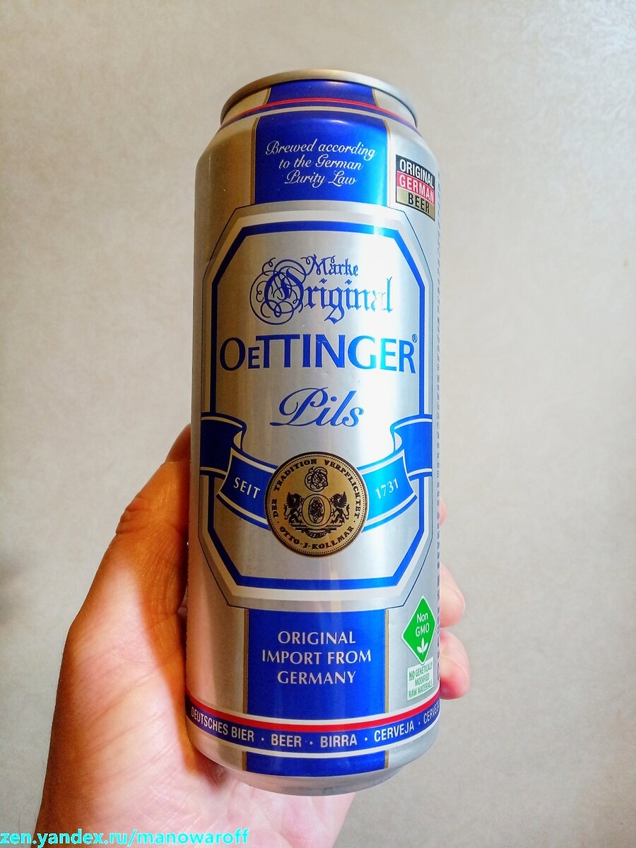 Продолжаем знакомиться с продукцией баварской пивоварни Oettinger Brauerei. И сегодня, как видите, будем дегустировать пилс. Дортмундское экспортное от этой пивоварни мне понравилось, так что есть надежда, что и пилс будет не хуже. Глянем на лаконичное описание пива и приступим к снятию проб: Крепкое пиво, при этом стройное и элегантное, тонкое, с короной пены, как свежее на кране. Крепкое? Немцы явно не знают о существовании русских имперских стаутов. Моей банке пива было три месяца при сроке годности в 14 месяцев. В составе вместо хмеля значится его экстракт. ТТХ: Пиво золотистое, прозрачное. Пены прилично, опадать не спешит. Запах солодово-зерновой с легким хмельком. Вкус солодовый с небольшой хмелевой горчинкой, сильно не дотягивающей до заявленного уровня. Послевкусие не особо длительное, слегка горьковатое. Пьется отлично. В целом, это, конечно, не совсем пилс, а скорее нормальный лагер. Хорошо пойдет как под закусь, так и сам по себе. Купил за 79.90 рублей. Продегустированное п