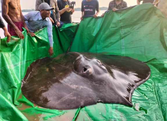 На прошлой неделе рыбак из Камбоджи получил права на "Настоящую рыбную сказку", поймав, как оказалось, самую крупную пресноводную рыбу, когда-либо пойманную. Гигантский пресноводный скат (Urogymnus polylepis) имеет длину более 13 футов (4 метра) и весит колоссальные 661 фунт (299,8 килограмма). Несмотря на его огромную массу, мало что известно о привычках и поведении этого вида скатов в дикой природе. Ученые пометили и выпустили рекордсмена, чтобы узнать больше о его характере миграции и предпочтительных местах обитания. Находка в форме лепешки в настоящее время закрепила за гигантским пресноводным скатом статус самой крупной известной рыбы в мире, потеснив гигантского сома Меконга (Pangasianodon gigas), самым крупным из которых был экземпляр весом 646 фунтов (293 кг), пойманный в Таиланде в 2005 году. Гигантский пресноводный скат также родом из реки Меконг. По данным NBC, он был пойман 13 июня рыбаком по имени Моултун в провинции Стунг Тренг на северо-востоке Камбоджи. На следующее ут