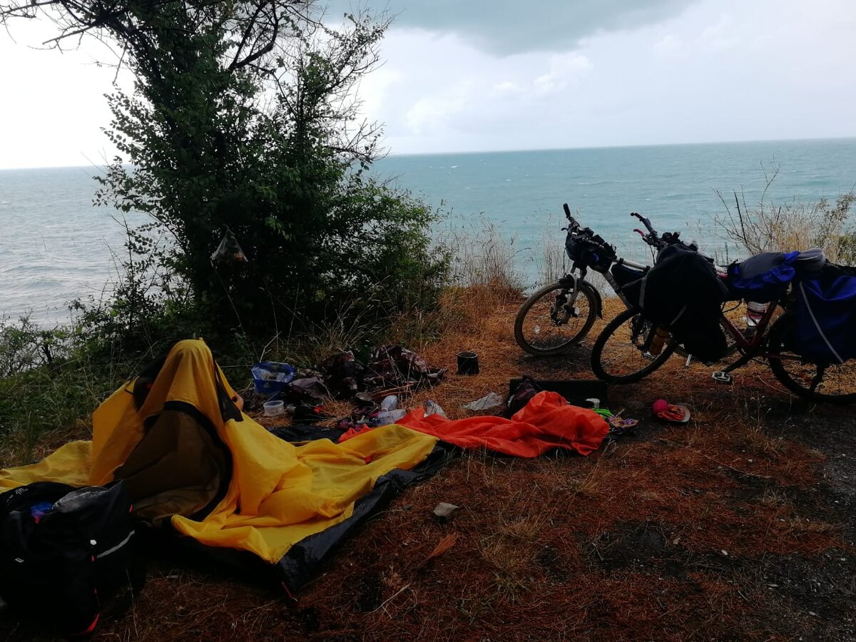 39 день! 23 июня! Проснулась абсолютно выспавшаяся в 8 утра! Идеально спалось не было жарко или холодно, при этом очень свежо от моря, ещё барабанил дождь, но завершался! Так бы и лежали полдня в палатке с комфортом, если бы "лёгкий бриз" с моря не начал уносить палатку в прямом смысле слова! У нас поломана дуга и здесь не было хороших тяжёлых камней, чтоб растянуть и закрепить качественно! К этому дуновению начался дождь и у нас начались резкие и быстрые сборы с попытками накрывать вещи и их складывать. Задача не из лёгких! Покидали кое как и помчали на выезд, наш сосед сидел в машине, а его дама спала в палатке на гране полёта! Остальные палатки с нашей стороны уже исчезли со знанием и пониманием опасности ситуации! Как только мы поехали, я испытала облегчение, чем дальше от моря, тем тише ветер и теплее. Пришло полное осознание и благодарность за то, что вчера долго не было места для ночлега и мы проехали больше, чем планировали, а это значит сегодня осталось проехать меньше. Но