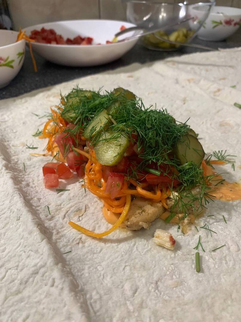 Что может быть вкуснее, чем шаурма, приготовленная своими руками 🤗 Правильное питание в сочетании с мега вкусной шаурмой-это Божественно 😍🤗😋 #вкусно #быстро #полезно #шаурма #ппшаурма #домашняяшаурма #ппменю #летнееменю Ингредиенты: лаваша, куриного филе, средние красные помидоры 🍅, небольших Маринованных огурцов, корейской морковки, укропа, кетчуп, майонез, соус для бургеры 🍔, подсолнечное масло для обжарки куриного филе Способ приготовления: Обжарьте мелко нарезанное куриное филе на сковороде. Подготовьте все ингредиенты для начинки. Смажьте лаваш соусом и выложите мясо, чтобы оно было сочным. Мясо накройте морковью. Морковь приправьте мелко нарезанными помидорами. Помидоры украсьте колечками из маринованных огурцов. И все это украсьте укропчиком 🤗. Заверните всю эту вкусноту в лаваш и отправьте в заранее разогретую духовку на 5-7 минут, подрумяньте вашу шаурма с двух сторон. Блюдо дня готово! Приятного аппетита 😋. Очень интересные видео - рецепты вы можете найти в моем профи