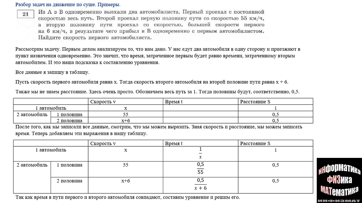 Разбор задач на движение по суше: движение навстречу друг другу, друг за другом, поезда, средняя скорость, из №21 второй части ОГЭ математик