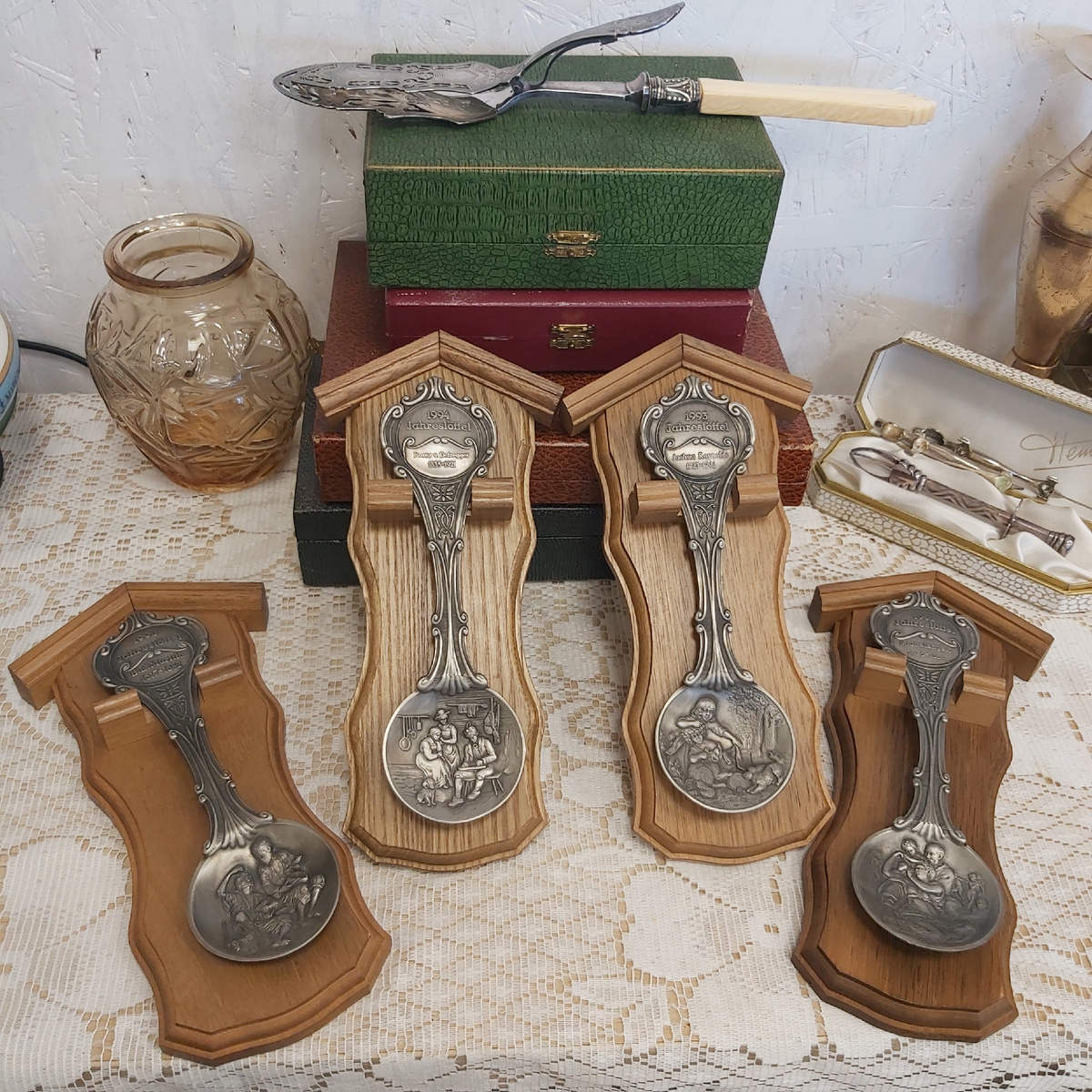 В наличии. Винтажные декоративные ложки на деревянных подвесах. Высокохудожественный утонченный дизайн. 🕸 Каждая ложка - отдельная история: дети, будни и праздники. Олово. 🌾Готовая коллекция для интерьера из 4х подвесов. Ложка 19 см. Деревянная основа 23 см. Цена комплекта = 6 000 ₽ Отправка каждые 3 дня. Доставка по всей России. Любая форма оплаты. #винтажноеолово #изделияизолова #винтажныйдекор #декоризвинтажногоолова #винтажнаяколлекция #колекциявинтаж #винтажныйдекордлястен #винтажныеложки