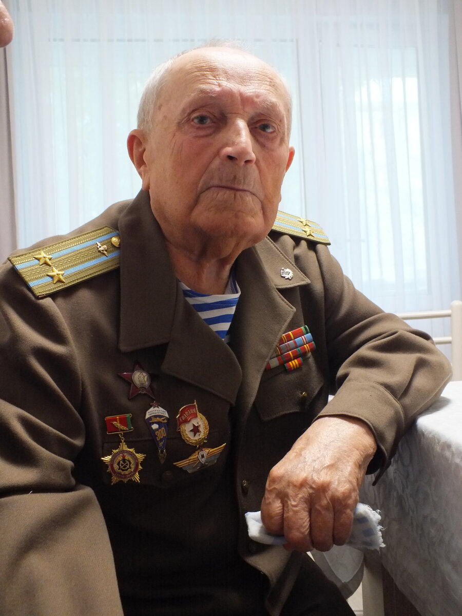 Ветеран в военной куртке с погонами подполковника. На ней — орден Красной Звезды и значок парашютиста, вместо рубашки — тельняшка десантника. В свои девяносто дед энергичен, подвижен, эмоционален. Я невольно залюбовался им…