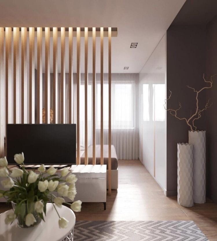 Меня зовут Анна, я дизайнер интерьера с 10 летним стажем. Все чаще мне обращаются с запросом, как в маленькой студии разграничить помещение, так чтобы не перегружать его? Декоративные перегородки, встроенные в натяжной потолок - идеальное решение этой проблемы. Собрала для вас подборку стильных интерьеров с использованием перегородок от Flexy Decor: