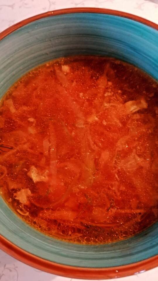 Сакральный Украинский борщ. Знаю много рецептов,этот один из любимых. Бо як то кажуть: "Жінка що смачно варить борщ ,як не крути ,а в душі відьма" Ингредиенты: фасоли в собственном соку, Томатная паста , крупная морковь, луковица, свекла, Мясо на бульон, сахара, уксуса, Капуста белокочанная по вкусу и консистенции, лавровых листа, чеснока, Соль,перец,специи , картошек, Капуста белокочанная или пекинская, Вода, Зелень Способ приготовления: Варим бульон из мяса примерно 1.5 часа на небольшом огне Очистить овощи. Свеклу и морковь натереть на крупной тёрке Мелко нарезать лук Нашинковать капусту. Картошку нарезать кубиками На сковороде разогреть масло. Спассеровать лук,добавить морковь. Протушить 2-3 минуты и добавить свеклу. Потушить ещё 2 минуты,добавить томатную пасту и тушить минут 5 Из бульона достать мясо и разобрать или порезать Чернослив замочить. Мелко нарезать чеснок В бульон бросить картошку и варить до закипания Возвращаем в кастрюлю мясо и добавляем зажарку и варим до готовност