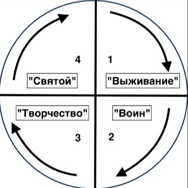 При изучении материала курсов по копирайтингу я была удивлена схемой, которая объясняет, что есть четыре группы людей по отношению к способам зарабатывания денег. На стадии выживания те, которые работают на дядю, получают мало, зато стабильно. Воины, которые сами «отбирают» ресурсы и отвоевывают себе место под солнцем в бизнесе. Они завязаны на том, чтобы быть как можно продуктивнее в единицу времени. Творцы, которые уже не участвуют в гонке эффективности, они создают в своё удовольствие уникальный продукт и наслаждаются результатом. Святые – это люди, которым дают деньги за то, что они есть, за те лучи добра, которые они посылают миру. Как человек, соприкоснувшийся с традиционными учениями, я тут же начала сопоставлять эту схему со схемой духовных каст Индии Рене Генона. Да и не только с этой схемой, а вообще, с духовными иерархиями древних обществ. Аналогия выходит хорошая, если не обратить внимание на основания той и другой иерархий: сакральной и буржуазной. В основе сакральной