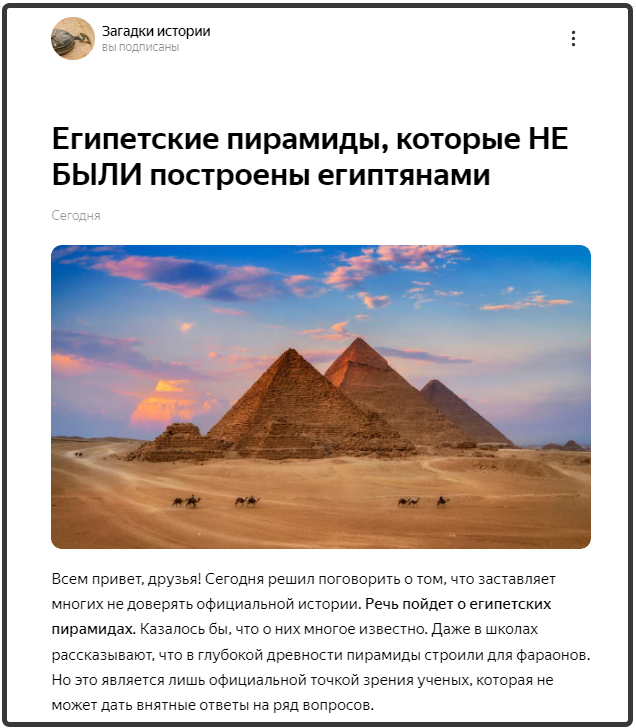 Прочел сегодня пост одного альтернативщика, который вдруг стал квалифицированным египтологом и предложил ученым свою неоценимую помощь. Вот его пост: Вы думаете, речь идет о каких-нибудь неизвестных пирамидах, которые были построены, например, гиксосами? Нет. Автор к пирамидам, которые были построены НЕ египтянами, относит ВСЕ пирамиды, которые находятся на территории современного Египта и, возможно, Судана. А кем они были построены? А кем угодно, но только не египтянами. А почему? А потому что гладиолус ученые не смогли доказать факт строительства пирамид древними жителями долины Нила! А как ученые египтологи могли бы доказать факт строительства пирамид египтянами? Вы не поверите, но альтернативный египтолог считает, что это можно сделать только одним способом - взять и построить пирамиды заново: Как нам это знакомо! Наши альтернативно одаренные специалисты говорят: "Поверим в полеты на Луну астронавтов полвека назад, если построите сейчас ракету Сатурн и отправите проверенных астрон
