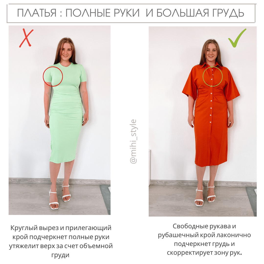Открыта запись на марафон стиля 3.0 ( последний поток по скидке) все базовые знания, консультации по гардеробу и обратная связь! БЕЗ ВОДЫ! Проверка Дз. Запись по ссылке в шапке профиля Обращаем внимание на детали! Платья — это самый важный мастхэв лета, на какие детали обращаем внимание при выборе? Полные руки: Выбираем модели с рукавом до локтя, такая длина визуально корректирует полные руки, чем более прилегающие рукава , тем полнее и шире будут выглядеть руки, выбирайте модели чуть свободные , а при выборе платья без рукавов обращаем внимание на широкие лямки. Широкие плечи:вам подойдут модели рубашечного кроя с открытой зоны шеи , крой на запах или v- образные вырезы, ваша задача удлинить зону шеи и за счёт этого скорректировать плечи. Если у вас фигура перевёрнутый треугольник, то прямые и широкие модели лишь добавит фигуре угловатости, а за счёт широких плеч силуэт будет намного шире и полнее, лучше отдавать предпочтение моделям с акцентом на талии и юбкой трапециевидного кро
