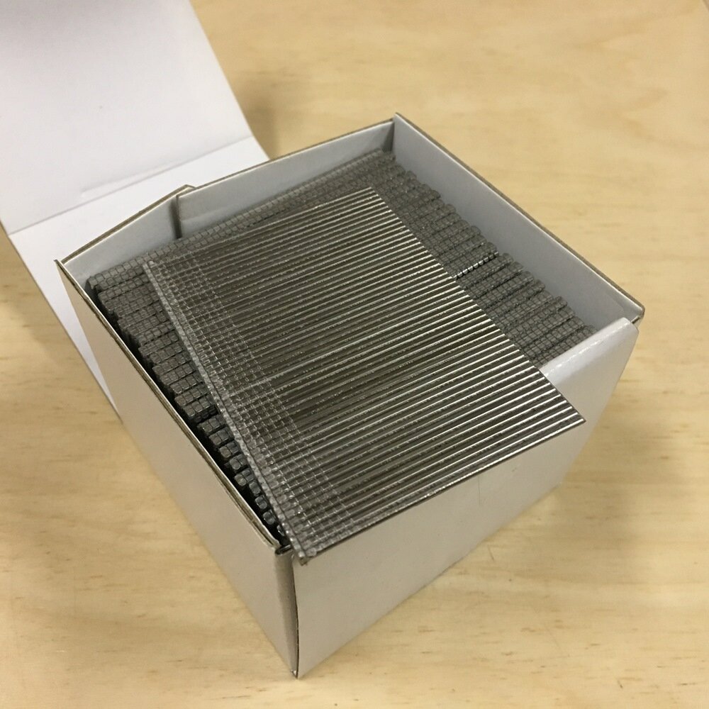 При выполнении строительных работ часто возникает необходимость прибивать различные материалы. Для выполнения этих работ существует несколько типов расходных материалов: гвозди, штифты и шпильки, скобы. Различие касается размеров шляпки и если у гвоздей и штифтов она есть, то шпилька не имеет никакой шляпки. Это свойство позволяет использовать её в тех местах, где крепление должно быть максимально незаметных. Для сравнения на фотографиях выше представлены 3 типа крепежа. Разница меду сечением ножки и шляпки составляет (слева-направо): 1.4, 0.24 и 0 мм. Существует два основных направления использования шпилькозабивных пистолетов. Применение шпилькозабивных пистолетов Первое из них — отделка высококачественными материалами, реставрация, крепление мелких элементов из дерева. Поскольку шпильки для пистолетов склеены между собой в пластины, при вхождении в материал шпилька «приклеивается» к нему и к несущим способностям самой шпильки добавляется и несущая способность клея, которым она смаза