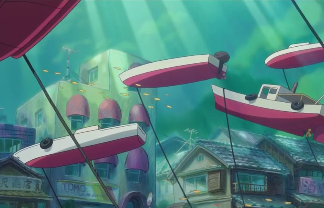 1. Действие аниме "Рыбка Поньо на утёсе" происходит в загробном мире по пути в рай.
