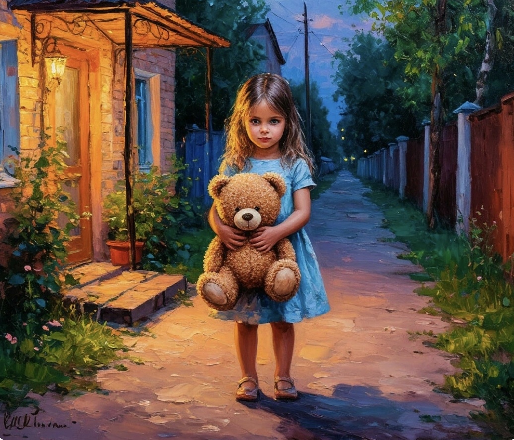 Света решила уйти из дома. Всё равно её никто не любит, вечно ругают, она никому не нужна.. Постояв в углу, она пошла на улицу, взяв с собой печенье и плюшевого мишку, её друга. Он единственный всегда слушал её и понимал. Вместо глаза у него была пуговица, и от этого он был ещё милее, Свете было жалко его.