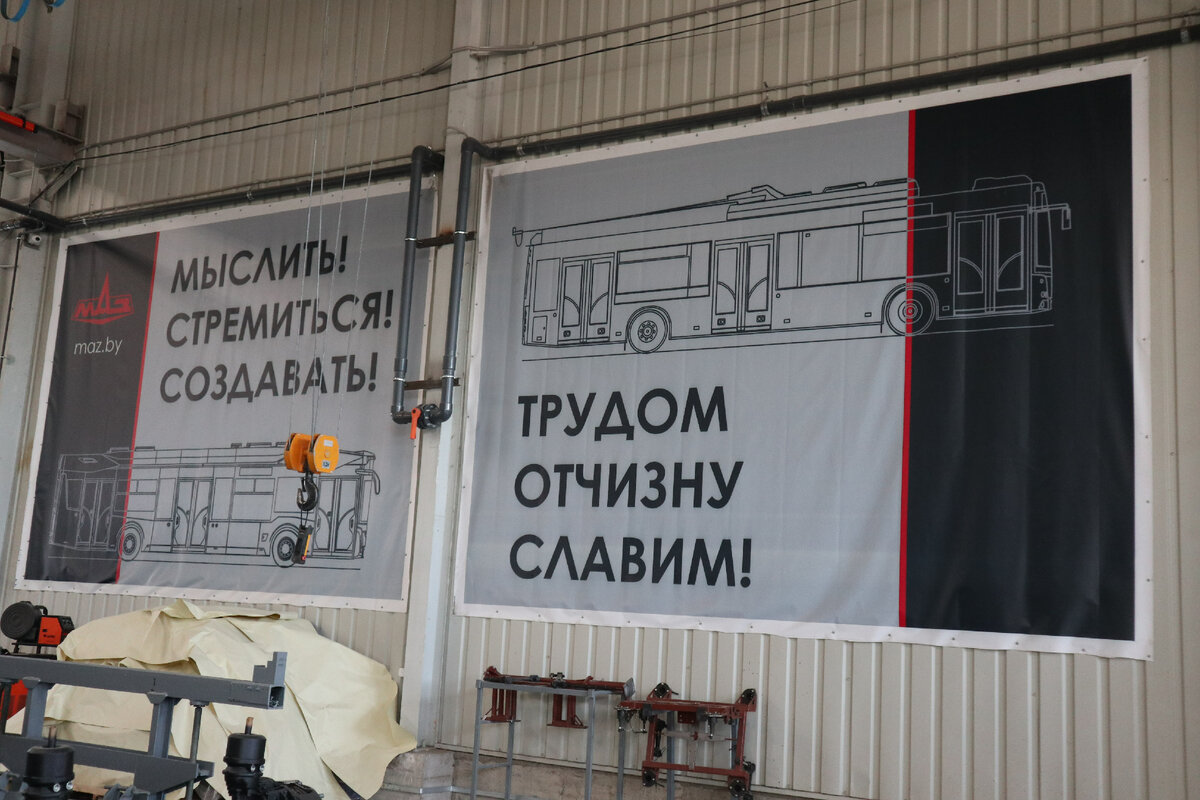 Интересно, что половину цеха у МАЗ-ЭТОНа арендует, собственно, МАЗ.. Да-да, вот так по сути, сам у себя, но - нет! Сам МАЗ специализируется на автотехнике, и конкретно из этих жодинских цехов выходят многочисленные автобусы. Причём собираются они на тех же линиях, что и троллейбусы и электробусы.