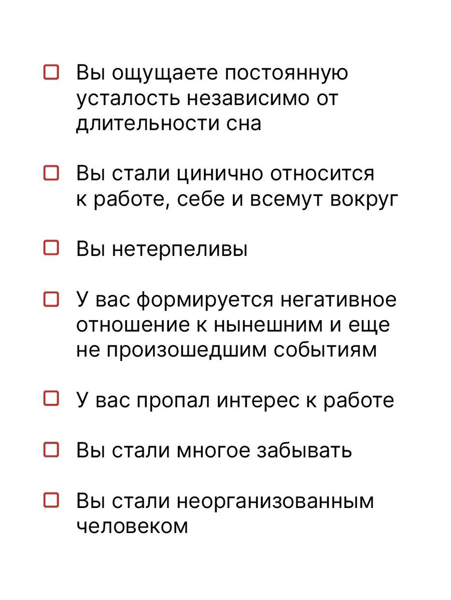 Работать нельзя перегореть. Вы бы где поставили запятую? Обычно эмоциональное выгорание происходит в связи с работой и мешает, прежде всего, именно работе. Так что если вы уже заметили, что прежде любимая профессия больше не приносит вам радости, то есть о чем задуматься. Посмотрите на наш список и ответьте «да» или «нет» Если вы ответили «да» на большинство пунктов, то это тревожный сигнал, но выход есть. Команда MТ делится секретами того, как не выгорать на работе.