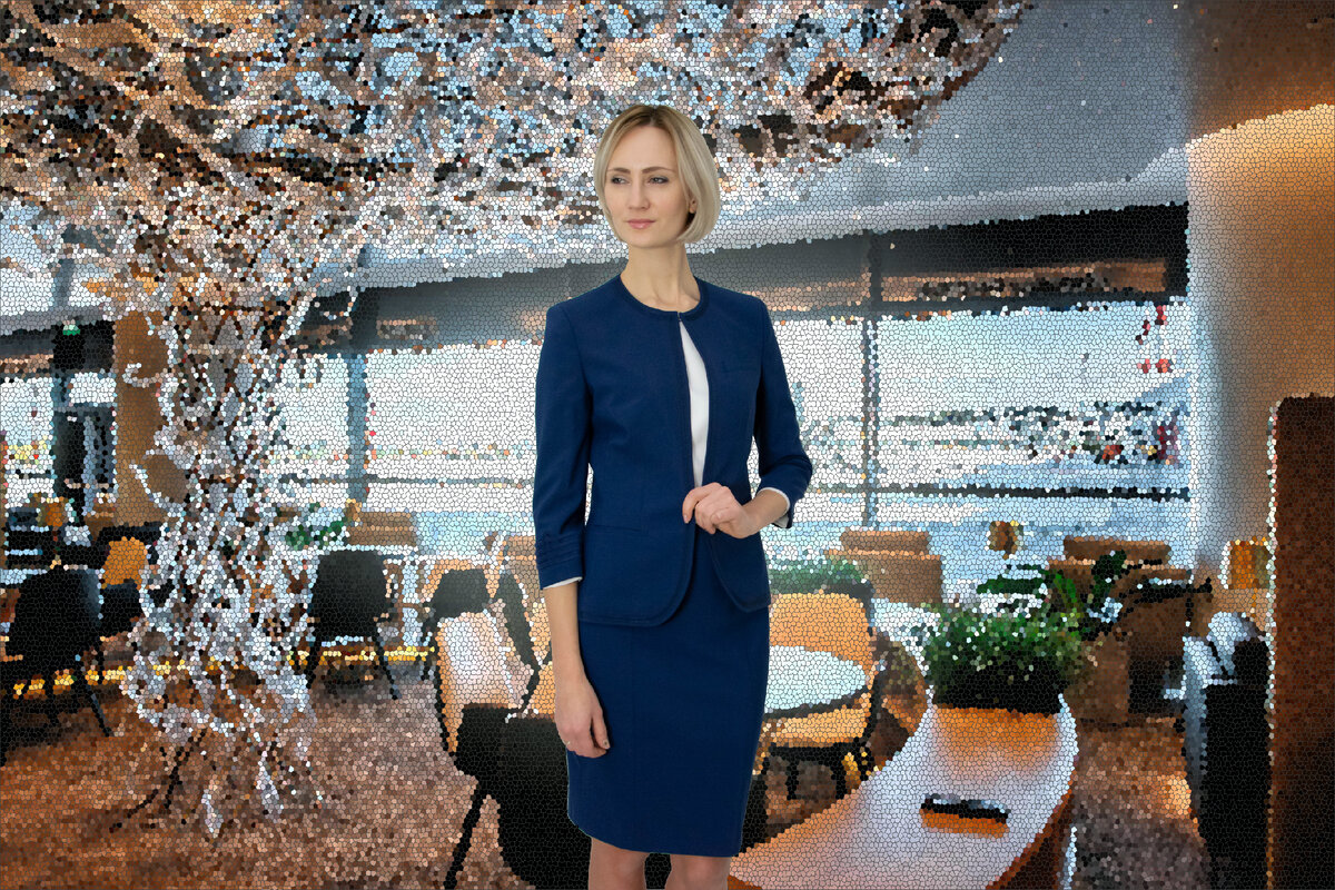 Мы одевали операторов VIP-залов Международного аэропорта «Шереметьево». И это был классный, долгий и интересный проект 2020 года, потому что от нас требовался индивидуальный авторский подход. Изюминка проекта состояла в том, что для изготовления женских костюмов требовалась ткань редкого сапфирового оттенка, определённого состава и плотности. Борта и рукава жакетов украшались тесьмой в виде плетёной косички в цвет ткани — такого же красивого сапфирового оттенка. Как на фото ниже Благодаря данному проекту, мы вышли новых партнёров по производству сырья, которые находятся в Европе, в частности в Германии.