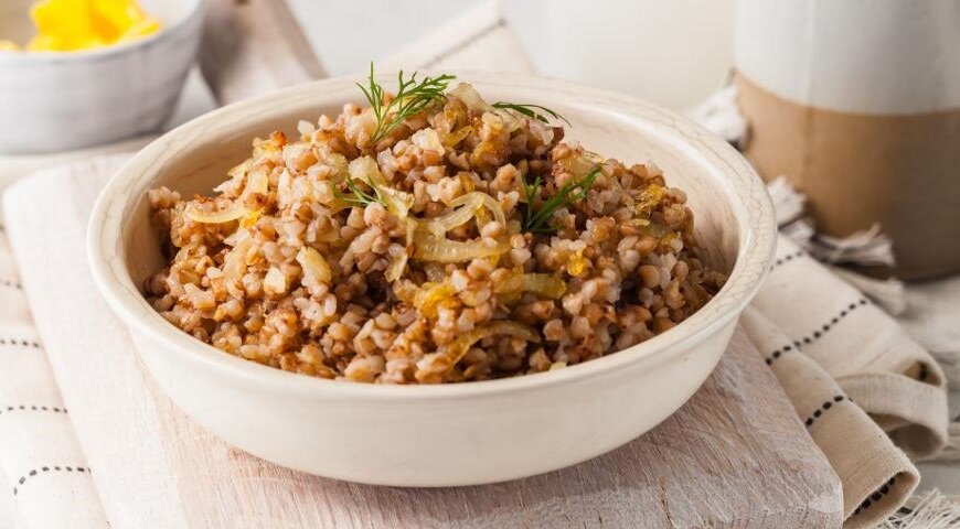 Ингредиенты на 4 порции: Приготовление: 1. Вскипятить 1 л воды. Очистить лук и коренья петрушки. Выложить в кастрюлю с водой нарезанные коренья и 1 целую луковицу. Варить 5 мин. Всыпать крупу и варить, помешивая, до готовности крупы. Вынуть лук. 2. Оставшуюся луковицу нашинковать, обжарить в 1 стол. ложке сливочного масла и добавить в кашу. Заправить сметаной, маслом и зеленью петрушки. Посолить и поперчить. Оставить под крышкой еще на 15 мин и подать на стол.