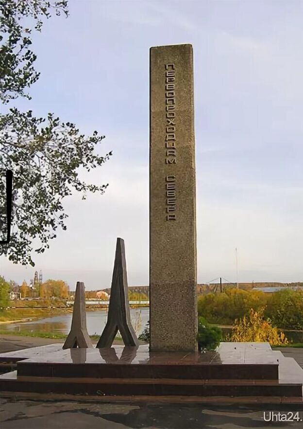 Первые места куда можно отправиться - это знак «Первопроходцам Севера» - именно сюда в начале 20 в. прибыла первая геологоразведовательная экспедиция, давшая старт началу освоения нефтедобычи на р. Ухта, развитию поселения (пос. Чибью - позже будет преобразован в город) и промышленному развитию всей Республике Коми!