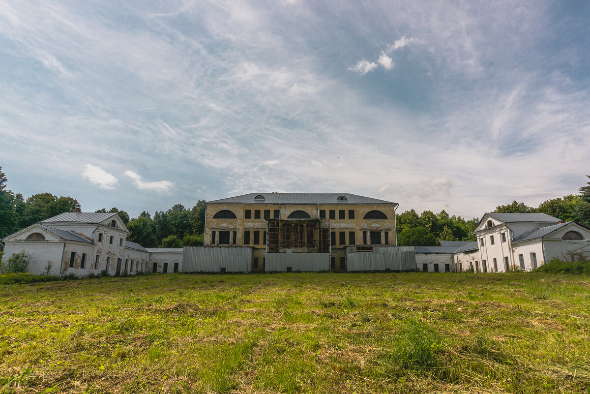 А вот с точки зрения история и архитектуры внутри усадьбы мало интересного. Во многих залах стоят деревянные подпорки, полным ходом идет подготовка к реконструкции.