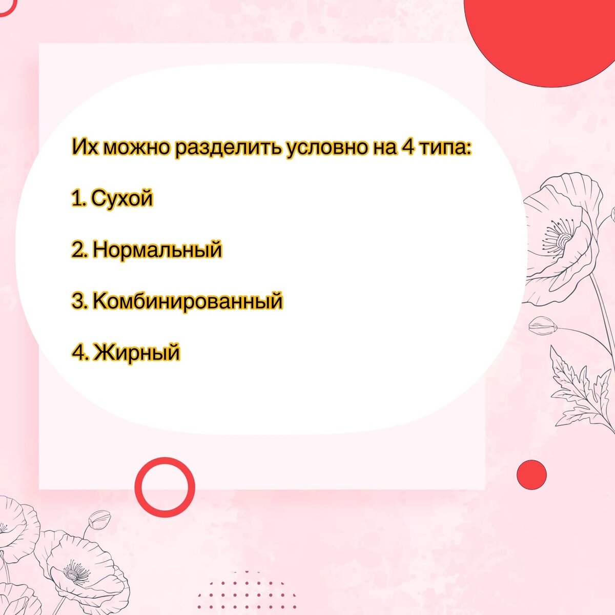 Дорогие девочки приветствую Вас! Чтобы улучшить качество своей кожи и быть нереальной красоткой, самое главное-это ПРАВИЛЬНО определить свой тип кожи! Это основа без нее никуда! Разберем, какие бывают типы кожи. Ещё есть люди, которые считают, что существует пятый тип кожи-<чувствительный>, но это неверное суждение, так как чувствительной, кожа может быть любой из ранее перечисленных четырёх типов. Как же нам определить свой тип кожи? Давайте отдельно разберем каждый. Конечно, идеально сходить к косметологу, чтобы он определил ваш тип. Но если такой возможности нет-давайте справляться сами! 1 тип Сухой Кожа сама по себе очень тонкая, поры очень маленькие, едва заметные. Скорей всего просвечиваются сосуды. Никогда не бывает жирного блеска, наоборот она матовая. Вас все время сопровождает чувство, как будто кожа стянута и сухая. 2 тип Нормальный Поры возможно немного заметны в Т-зоне (лоб, нос, подбородок), но они неярко выражены. Кожа достаточно матовая, возможен небольшой блеск