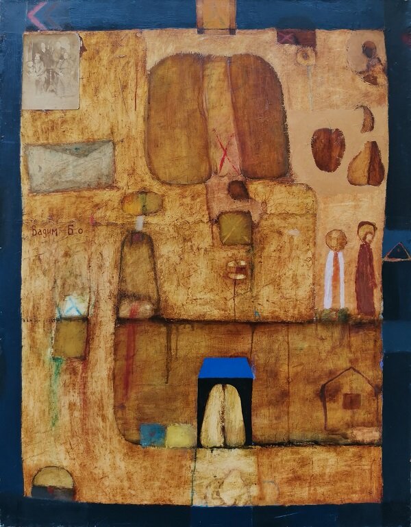 Комментирует куратор галереи SMART, искусствовед, Горбунова Мария: «У художника Вадима Бо символы перемещаются из картины в картину. При этом его собственный символический язык открыт для свободной трактовки зрителей. В работе «Долгое путешествие» мы видим символы дорог, домов, писем, путешествующих святых (две фигуры, облаченные в коричневое и белое, близкие к иконописным образам). Картина выполнена с использованием различных фактур, напоминающих фрески, иконы, дерево. В левом верхнем углу мы видим старинную фотографию как символ обращения к предкам, путешествие в прошлое. Синяя арка служит точкой входа в работу, после нее мы начинаем замечать и рассматривать остальные элементы Художник Вадим Бо фиксирует сочетания цветов и фактур, которые он находит в городской среде, с помощью фотографии и потом использует этот материал в своей работе в качестве косвенных аналогов». Работы художника находятся в коллекциях: Подробнее о художнике и картине можно прочитать на нашем сайте. Ставьте лайк