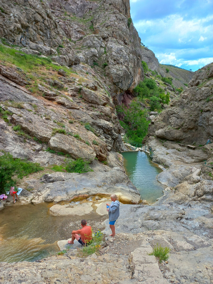Находится эта невероятная красота где-то между Судаком и Алуштой. Зеленогорье - это небольшой поселочек с первозданной природой. Сюда редко ступает нога туриста, но мы, все же, осмелились и полезли в самое сердце уникального места. Сразу поделюсь советом для смельчаков, которые отважатся сюда приехать за порцией счастья – одевайте удобную обувь, лучше кроссовки с носками, чтобы подошва не скользила, и нога плотно облегала вашу ступню. Для того, чтобы покорить «Эверест» и увидеть главный Арпатский водопад, нужно пройти не один километр по влажным покатым камням, взбираясь все выше и выше. Детей я бы сюда не брала. Не слушайте гида, который рекомендует вам пойти с детьми младше 10 лет. Это не только опасно, но и тяжело для маленького организма. Немного истории Изначально это место облюбовали тавры, которые назвали его Арпат. Позже здесь жили и монголы, и османы, и татары. В 18 веке любительница возвышенных названий Екатерина Великая назвала здешние места Панагия, что в переводе означает