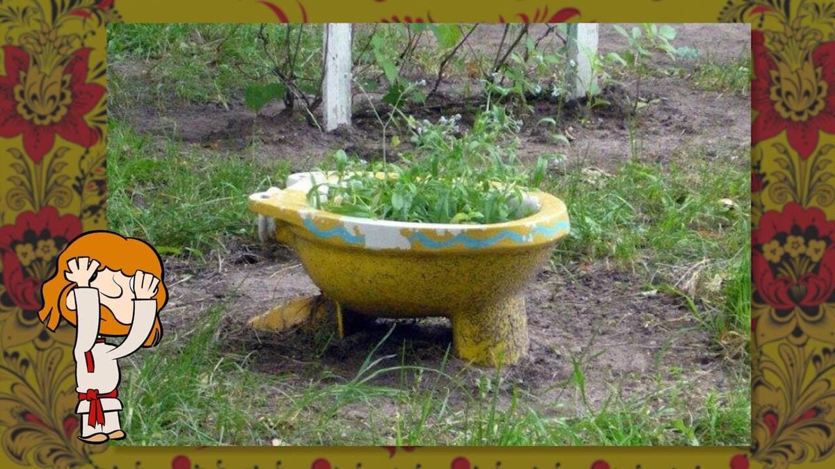 У нашего народа есть свои традиции, как уходящие в глубину веков (например, масленица), так и современные (смотреть «Иронию судьбы» в последний день года). Следующее фото запечатлело еще одну зарождающуюся тенденцию — устраивать дворовые клумбы из всего, что больше не пригодно в хозяйстве.