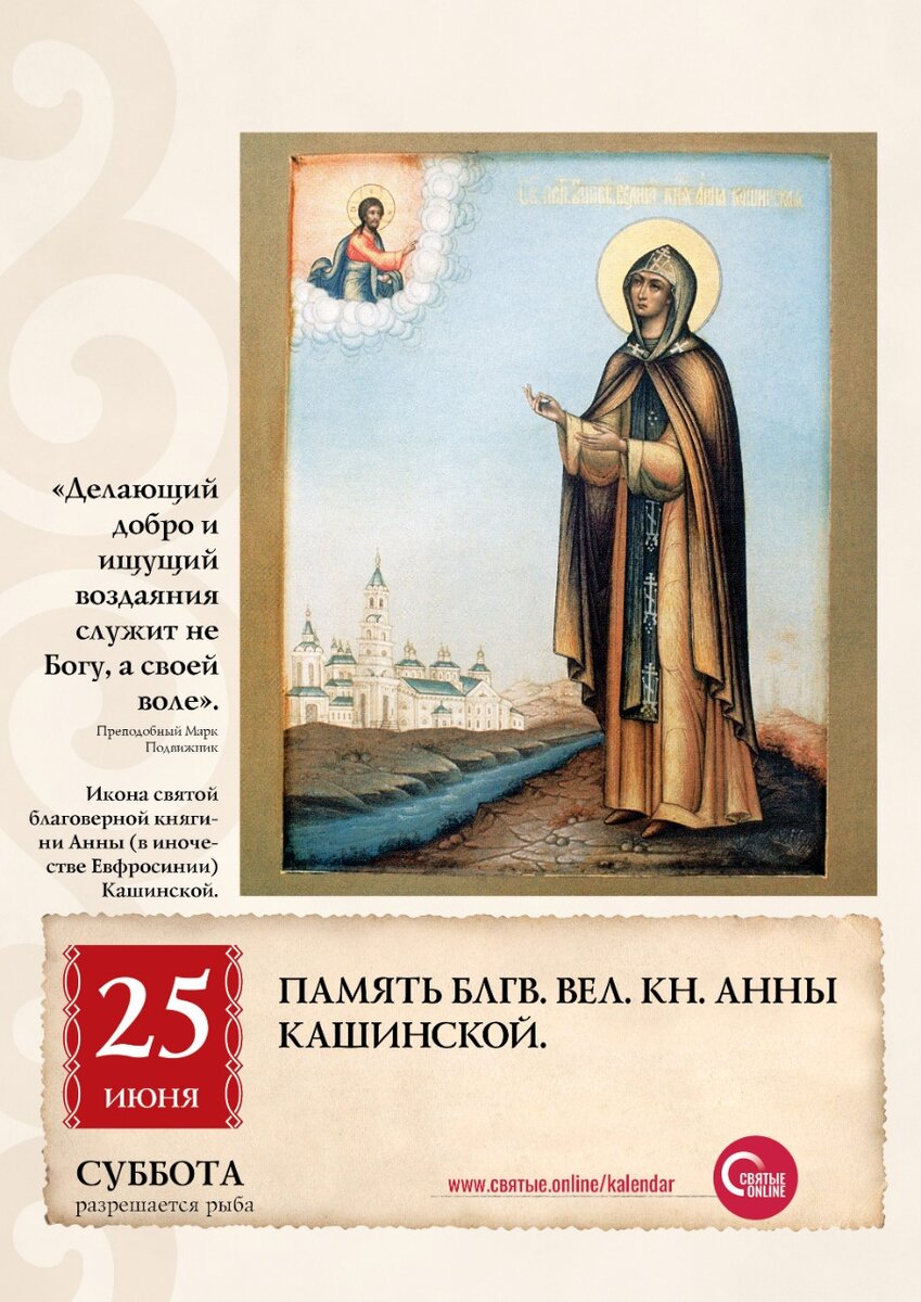 25 июня - память преподобной Анны Кашинской. Именинницы - Анны