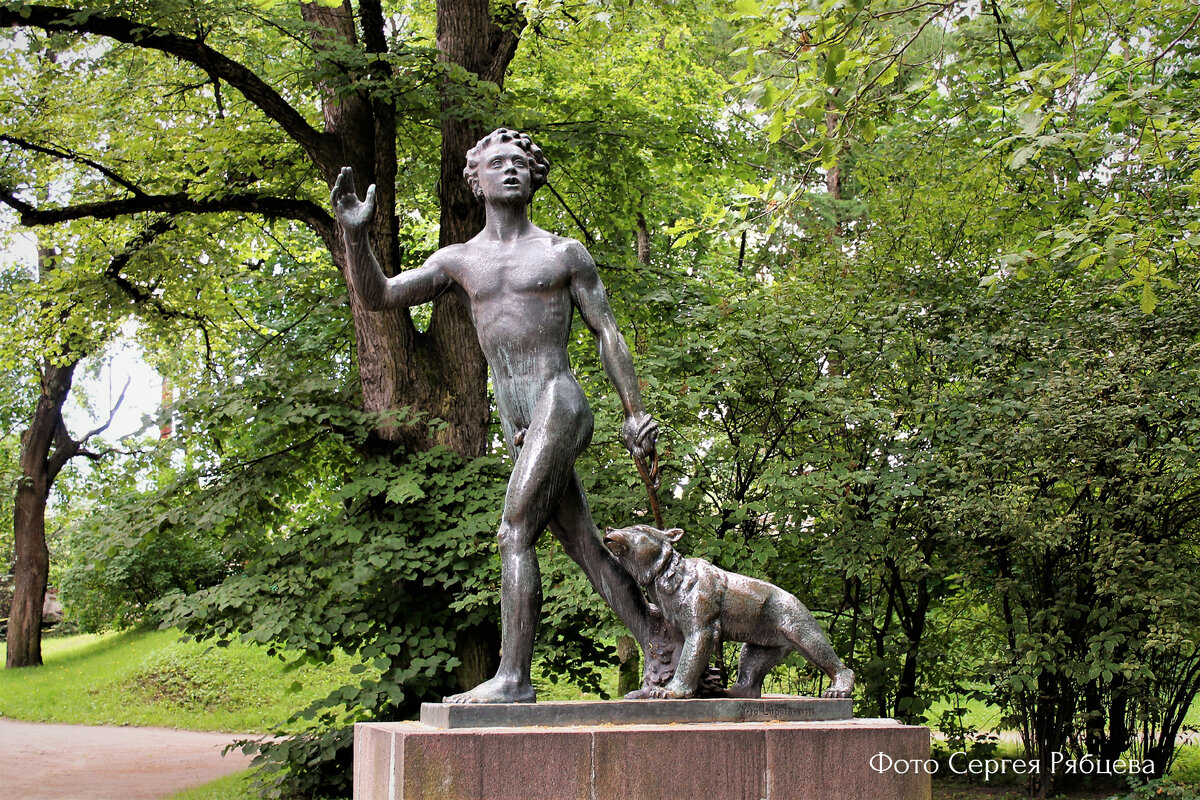 В городском парке Выборга на одной из его аллей стоит бронзовая скульптура мальчика, тащащего за собой медвежонка, называется она «Сын егеря». Довольно интересная работа финского скульптора, ныне покойного, Юрьё Лийпола. Однако меня больше привлёк пёс, что расположился рядом, вероятно, собака, по виду - бродячая, решила здесь отдохнуть. Конечно, прямого отношения к мальчику с медвежонком пёс не имеет, но, полагаю, общую композицию сей парковой скульптуры не нарушает, напротив, вносит некое, как мне кажется, недостающее звено между человеком, в образе сына лесника, и медвежонком, олицетворяющим мир дикой природы. Своим отрешённым видом бродячий пёс как бы говорит нам, всё – суета сует и томление духа, нельзя кривое сделать прямым, и то, что не существует, невозможно представить, а если выразить попросту, не стоит пытаться приручить дикого зверя, тем более против его воли, наступит час и он всё равно убежит в лес. Увы, мальчик, хоть и сын егеря, но сих постулатов не понимает, а потому уп