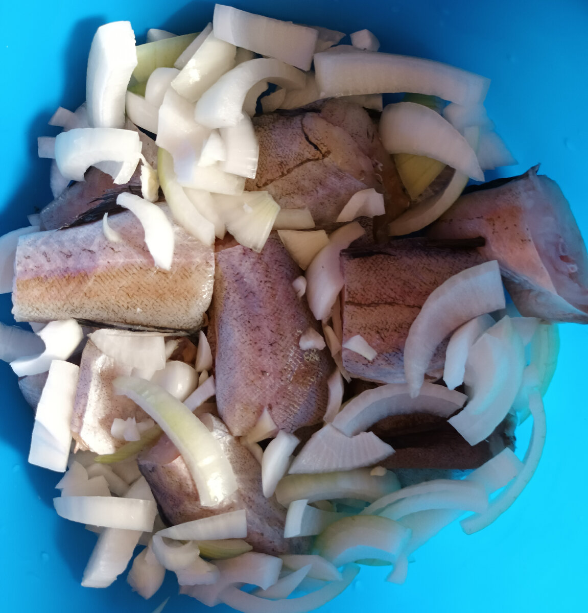 Отличный обед или ужин без лишних усилий. Приготовление такого блюда не отнимает много времени и сил, но получается очень вкусным и ароматным. Для такого блюда главное выбрать рыбу, в которой мало мелких костей. У меня это минтай. ИНГРЕДИЕНТЫ: СПОСОБ ПРИГОТОВЛЕНИЯ: 1. Рыбу очищаем, промываем и режем каждую на кусочки. Складываем в глубокую миску. Туда же отправляем лук, измельченный на кусочки произвольной формы. 2. Добавляем к рыбе с луком майонез, растительное масло, перец черный молотый, перец красный молотый, соль и перемешиваем. 3. Картофель очищаем, моем, нарезаем на кружочки толщиной 5-8 мм и отправляем в миску с рыбой, все аккуратно перемешиваем. 4. Рыбу с картофелем равномерно распределяем на противне. Противень не смазываю, у меня он с антипригарным покрытием, ничего не прилипает, если у вас такого нет, то лучше предварительно смазать его растительным маслом или застелить фольгой. Сверху при желании можно посыпать любимыми специями. 5. Отправляем в разогретую духовку до 180°