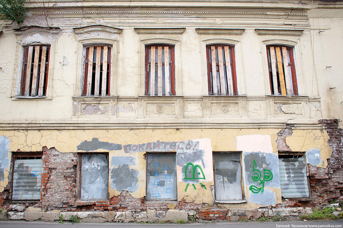 Вот так неприглядно выглядел фасад дома 26с1 по Кожевнической улице совсем недавно, до революции это был доходный дом (1914, архитектор С.Антонов).