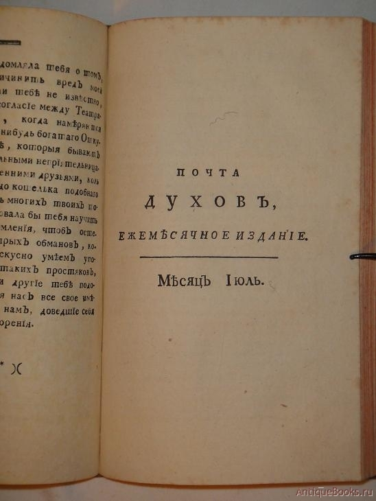 Одно из первых писем «Почты духов» – письмо от сильфа Дальновида о свойствах мизантропов – подхватывает проблематику одного из самых ярких эпизодов журнальной полемики 1769-1774 гг. – спора о сатире между «Трутнем» и «Всякой всячиной». Издатель «Трутня», настаивал на непримиримом отношении к пороку и порочному человеку и был обвинен императрицей в отсутствии «кротости и человеколюбия», то есть в мизантропизме.