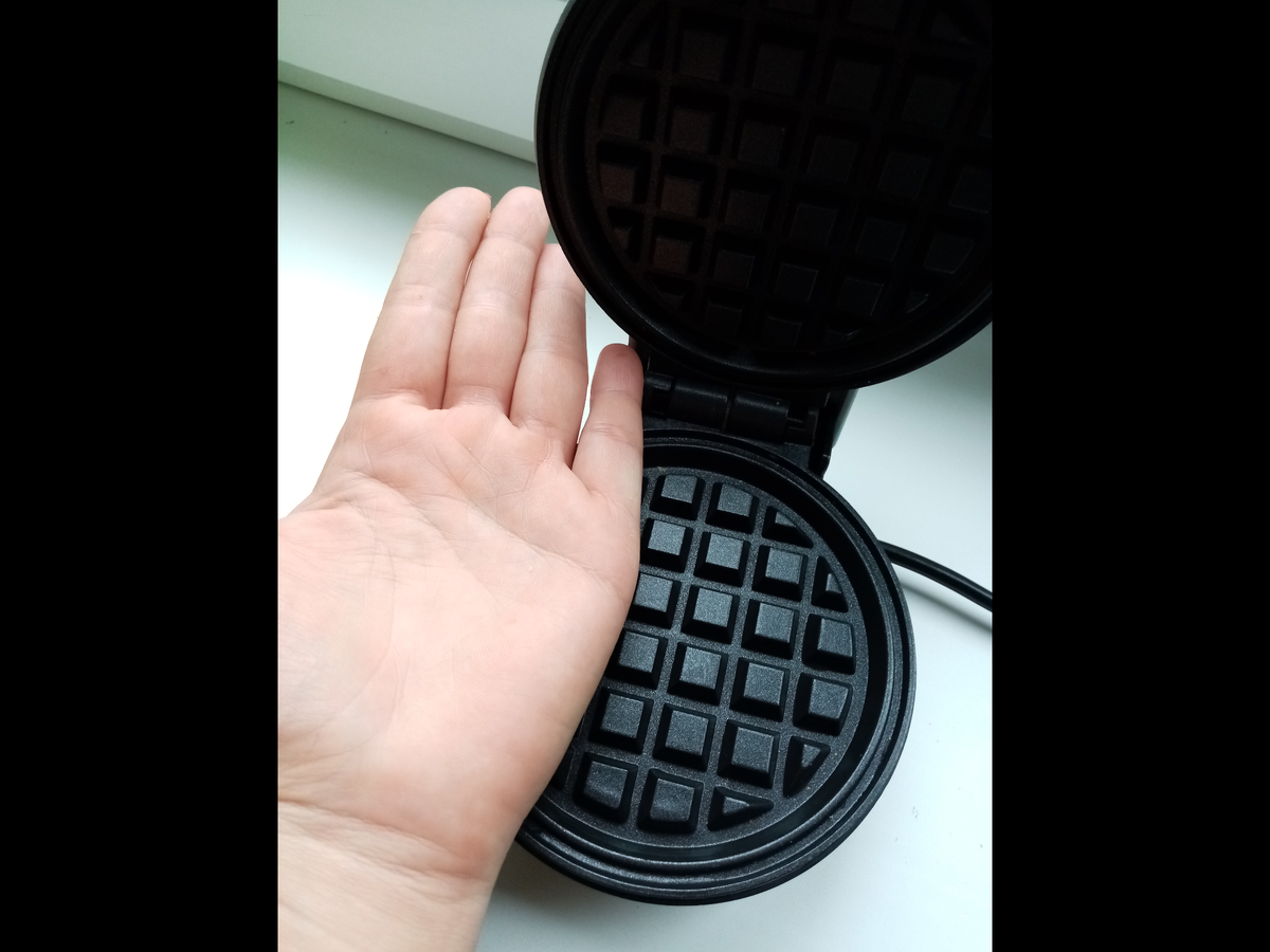 Эта статья не реклама, просто мой честный отзыв о моей давнишней хотелке и несколько рецептов к ней😊 Статья длинновата, но не охота доставлять неудобство подписчикам и рассусоливать рецепты вафель на 4 статьи, хотя мне бы это было выгоднее😁 Сбылась моя идиотская мечта купить себе мини-вафельницу)) Почему я хотела мини? А кто его знает)) Но в голове было, что теперь я могу испечь к чаю пару вафелек и не разводить выпечку на полдня) Муж когда забирал заказ, сказал: Сынуля, у тебя мама впала в детство)) Заказала игрушечную посудку 😂 Вафельница действительно не больше ладони: Первый рецепт - самый простой, без добавления сливочного масла Нам необходимо: Мука - 1 стакан (130 гр) Яйцо - 2-3 штуки (моих деревенских по 65 гр 2 шт) Сахар - 3 ст.л Масло растительное - 3 ст.л Разрыхлитель - 1 ч.л Молоко горячее - 2 ст.л Ванилин по желанию Второй рецепт - сырники Нам необходимо: Творог - 200 гр Яйцо - 2 шт Сахар - 2 ст.л или больше, если сладкоежки)), щепотка соли Мука - 3 ст.л Разрыхлитель