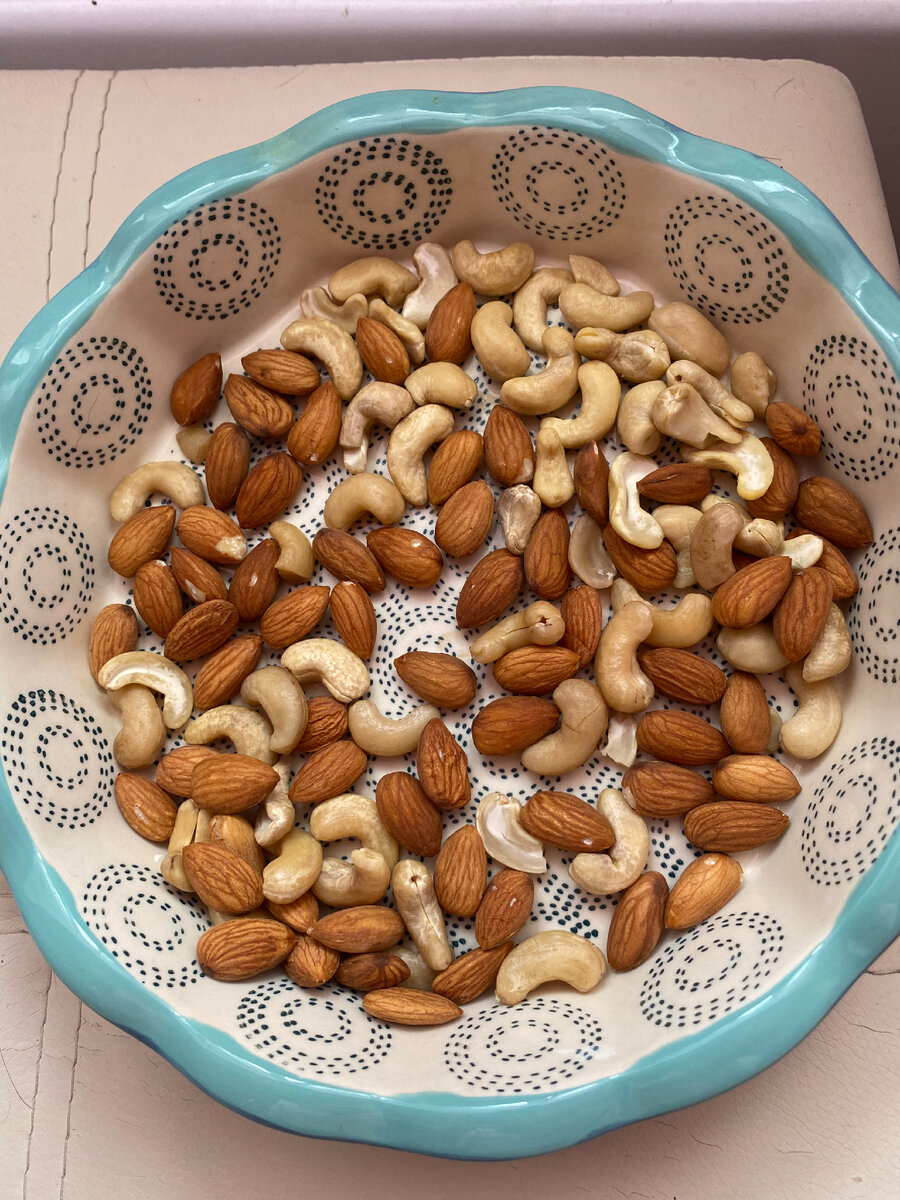Вы когда-нибудь задумывались о пользе орехов ? Ведь это самые правильные растительные жиры. А также в них содержится большое количество белков , что очень важно для веган-рациона. Но, в них содержится не очень хорошее вещество - фитиновая кислота. Не хорошее оно тем , что вызывает вздутие и тяжесть в кишечнике. Что же делать. Все просто. Нужно замачивать орехи. Также , прошу обратить внимание , что орехи нужно покупать не жареные , а сырые. Кстати , в этом будет целых три плюса ! Первый : обезопасим наши зубы. Ведь орехи после замачивания станут мягкими. Второй: орехи станут чистыми. Я всегда промываю орехи , и не зависит куплены они на разновес или уже в упаковке. Третий плюс : уберём фитиновую кислоту. И ещё маленький лайфхак от меня, орехи потом вновь можно подсушить в духовом шкафу. ПРИЯТНОГО