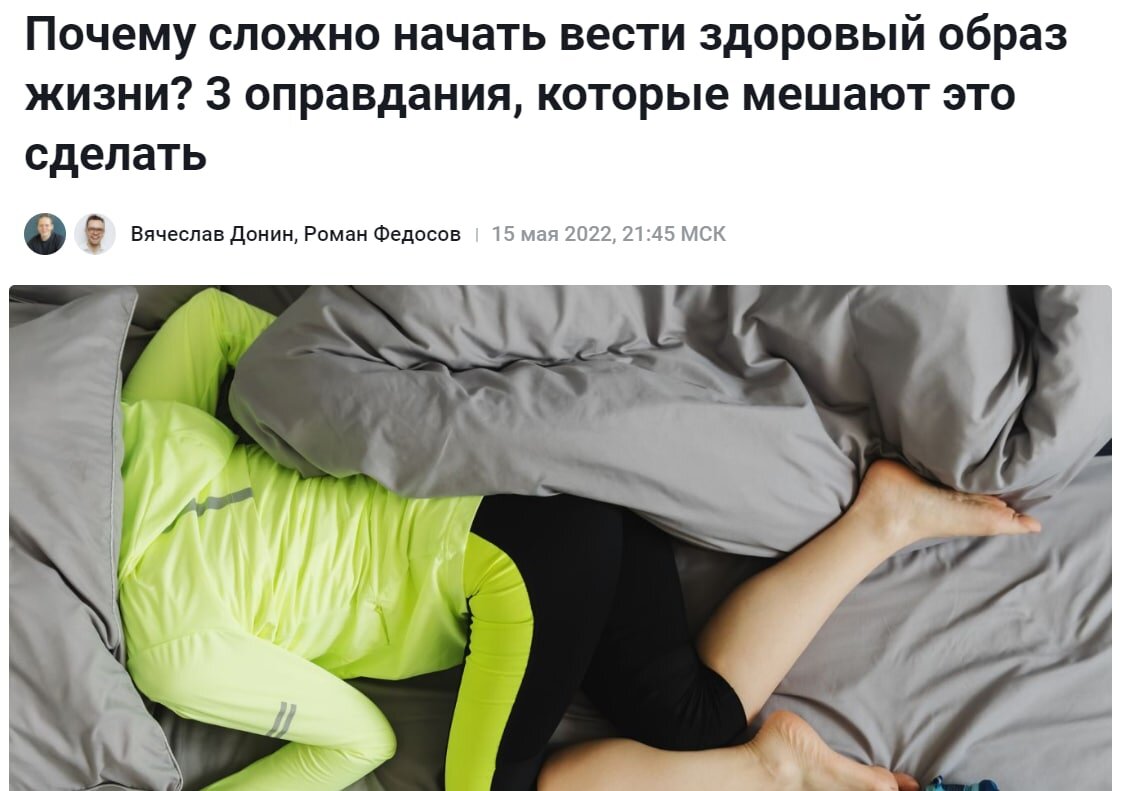 Вышла моя статья на сайте Championat.com "Почему сложно начать вести здоровый образ жизни? 3 оправдания, которые мешают это сделать". Читать можно тут: https://www.championat.com/lifestyle/article-4693995-3-opravdaniya-pochemu-tak-slozhno-nachat-pravilno-pitatsya-i-vesti-zdorovyj-obraz-zhizni.html А что вам мешает вести здоровый образ жизни?