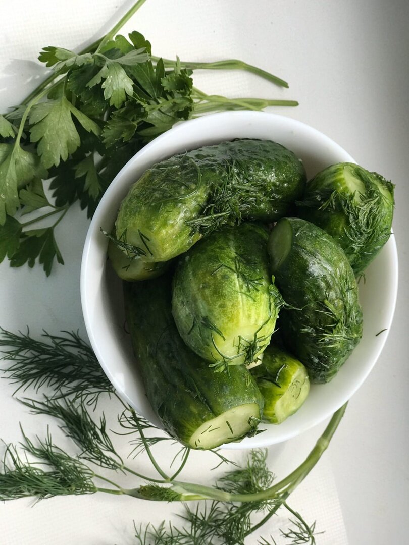 Мой рецепт малосольных огурцов максимально простой и быстрый. Я готовила из того, что есть в холодильнике. Если вы живёте в доме, можете добавить листья вишни, смородины, хрена. С ними вкус огурчиков получится более богатый, плюс ко всему, они получатся более хрустящими (буквально сегодня от мамы узнала). Но по моему рецепту тоже очень вкусно получается, так что дерзайте!
