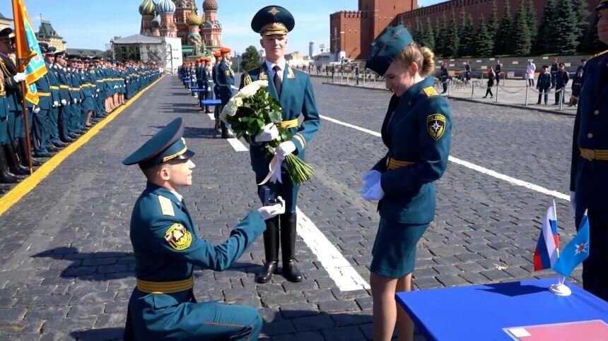 Со слезами счастья: курсант МЧС сделал предложение девушке на Красной площади