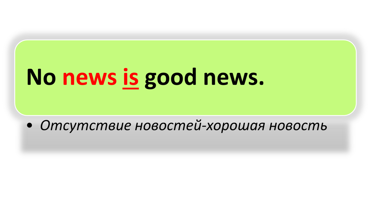 Друзья, мы уже разбирали тему множественного числа существительных. Однако, нюансов, связанных с этой темой довольно много. Сегодня я обращу ваше внимание на то, что есть группа существительных, которые употребляются только в единственном числе. Например, слово «news»- новости. В русском языке мы можем сказать и «новость», и «новости», однако в английском языке это слово не имеет формы единственного числа. Поясню на примере: Что означает это правило? Слова, которые не имеют множественного числа, хоть и могут переводиться на русский язык во множественном числе, но с грамматической точки зрения ведут себя как в единственном. После них нельзя поставить are или were, нельзя образовывать множественное число, добавив окончание -s, перед ними нельзя поставить артикль a(an). Ещё пример: Knowledge is power. – Знания-сила. Where is the money? It is on the table. – Где деньги? Они на столе. Обратите внимание, что мы не можем сказать про деньги They-они, мы говорим It, т.к. существительное Money н