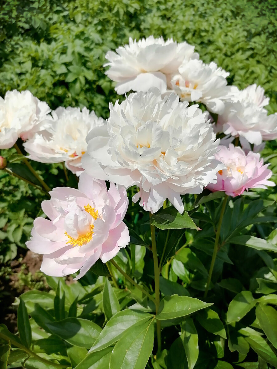 У меня в этом году, что то интересное происходит с кустом махрового пиона.На одной ветке есть махровые и простые цветки. Этому пиону на фото уже лет шесть.