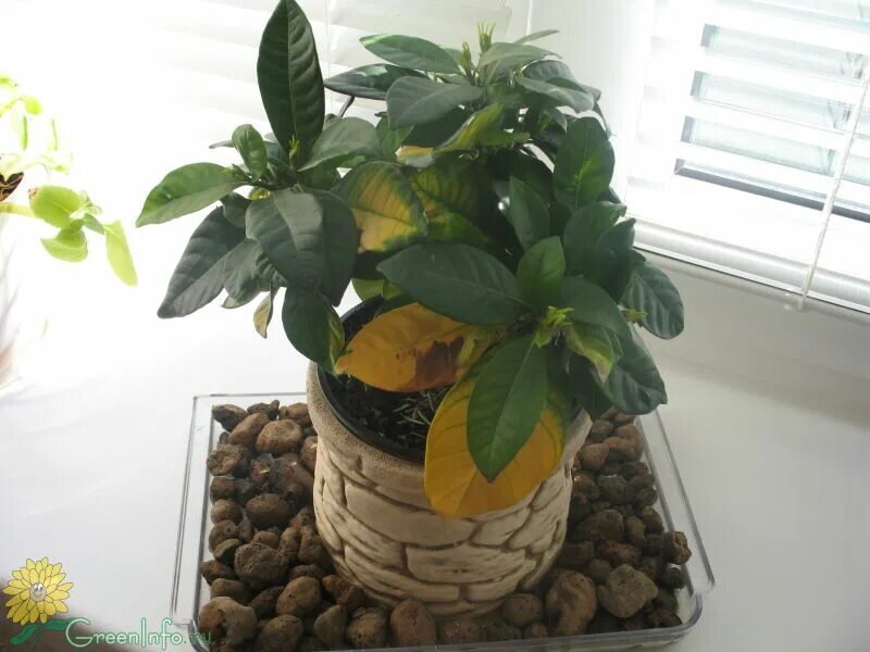 Это самый частый недуг гардении. Листья бледнеют, желтеют, иногда – только между прожилками. В любом случае, такие проявления указывают на неблагоприятные условия содержания растения. Причины: 1. Неправильный режим полива❌ Очень часто гардения желтеет при избыточном увлажнении грунта или, наоборот, после просушки. Полив нужен сразу же после высыхания верхнего слоя земли на 1-2 фаланги пальца (в зависимости от размеров растения и глубины горшка), ждать полной просушки земляного кома нельзя. Качество воды тоже играет огромную роль и запросто может привести к пожелтению листьев гардении. Капризное растение признает только хорошо отстоянную, в идеале – кипяченую или отфильтрованную (от хлора) воду. И только теплую! Холодная и жесткая вода – не подходит. 2. Неправильно выбранный субстрат❌ Думая о том, почему желтеет гардения, не обойдите своим вниманием субстрат, в котором она растет. Гардения предпочитает кислые почвы, на всех других она будет чувствовать себя плохо. В ней