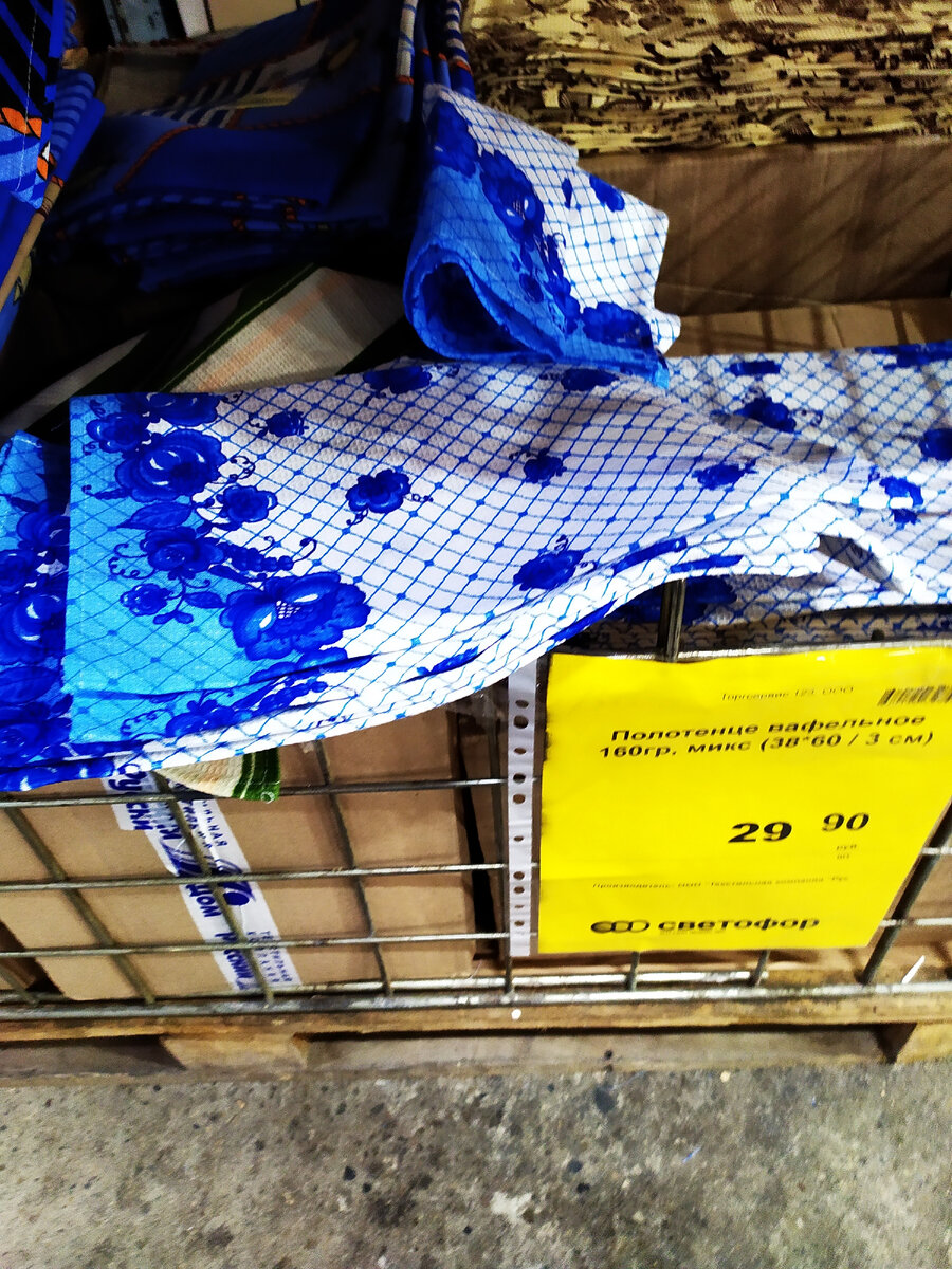 Посетив сегодня "Светофор" решила купить детский небольшой бассейн, плескаться ребёнку на улице. Цвета красивые и яркие, а цена ниже 700 рублей. И пока делала покупки в магазине, присмотрела и другие товары, которые недавно завезли в магазин. В этом обзоре делюсь с вами увиденным. И так, это "Светофор" в городе Новороссийск. Вафельное полотенце с рисунком, размером 38/60. Цена 30 рублей. Эмалированная кастрюля с крышкой на 5,5 литров. Цена 624 рубля. Подвесное дачное кресло на верёвках с нагрузкой до 120 кг. Цена 1088 рублей. Надувной походный матрас bestwey, размером 76/185 см. Цена 944 рубля. Сухой корм для взрослых кошек с овощами и кроликом, массой 1,9 кг. Цена 273 рубля. Детский надувной матрас на 282 литра разных цветов, размером 152/30 см. Цена 696 рублей. Сарафан на бретельках для девочек 7-10 лет. Цена 157 рублей. Горох шлифованный колотый "Увелка", в упаковке 800 грамм. Цена 59 рублей. Розовый маринованный имбирь для суши, в упаковке 1400 грамм. Цена 168 рублей. Йогурт овсяны