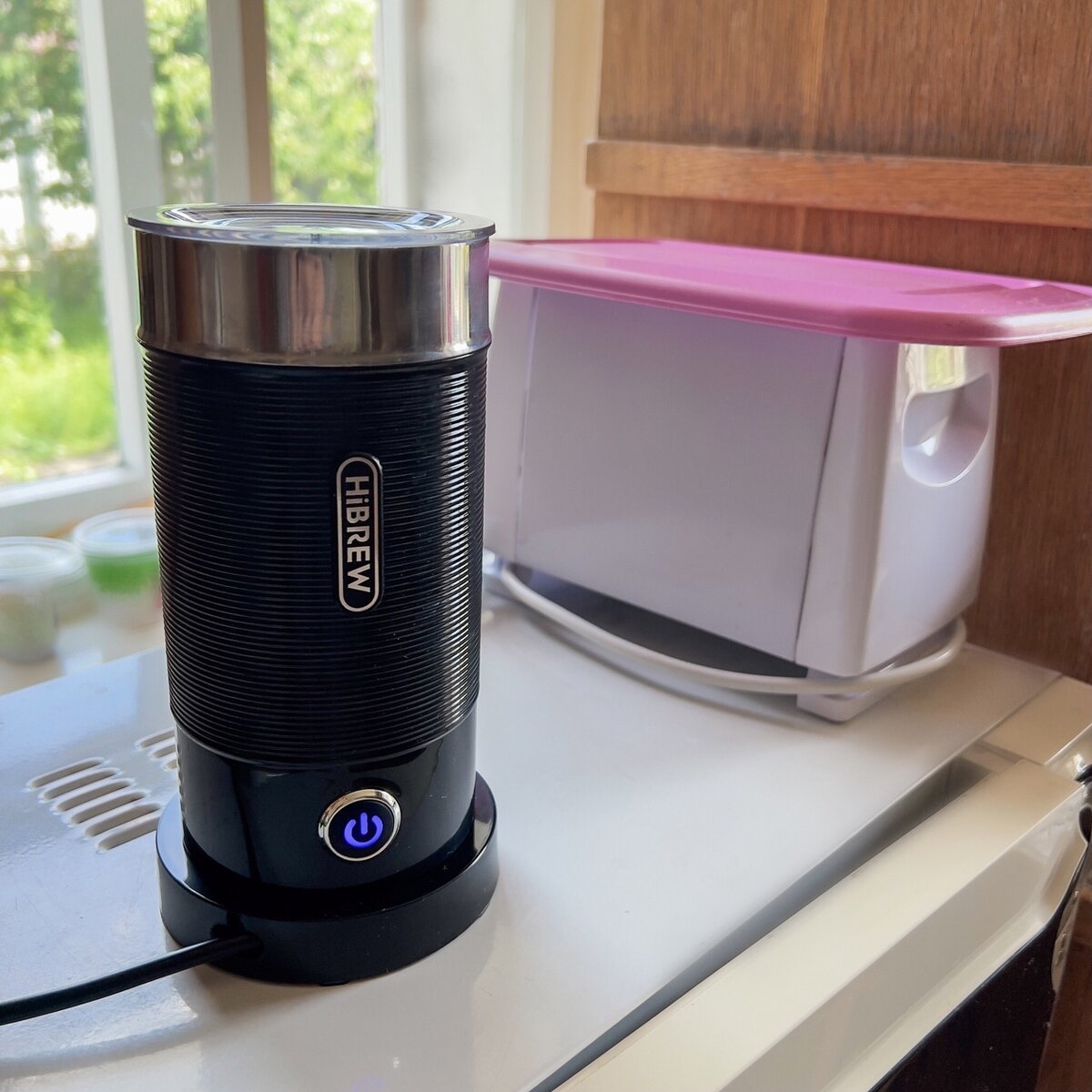 Кофе с густой пенкой как в кофейне, без дорогостоящей кофемашины -это реально! Достаточно приобрести электрический вспениватель молока HiBREW. Заказывала на AliExpress в магазине HiBREW Official Store. По ссылке такой вспениватель в наличии в чёрном и белом цвете корпуса. Доставка длилась 5 дней с Российского склада. В комплекте: вспениватель, прозрачная крышка, подставка с выдвижным шнуром, 2 насадки (одна запасная), щёточка для чистки, инструкция, фирменная коробка. Внимание: этот пост содержит рекламные ссылки (если их можно таковыми назвать). Вещь куплена мной на AliExpress, все фото мои, мнение о товаре тоже моё. Прямая ссылка на товар на AliExpress: https://aliclick.shop/r/c/1rdoqv4j97tdz6o3 Одна кнопка для управления. 3 режима работы: одно нажатие на кнопку - горячая густая пенка, двойное нажатие на кнопку - горячая тонкая пенка, длительное нажатие на кнопку - холодная густая пенка. Автоматическое отключение. Антипригарное покрытие, молоко не прилипает, легко чистится. В