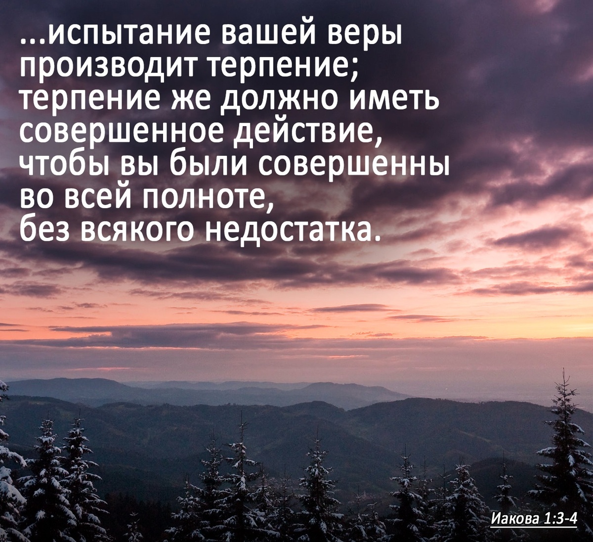 «С великой радостью принимайте, братья мои, когда впадаете в различные искушения, зная что испытание вашей веры производит терпение; терпение же должно иметь совершенное действие, чтобы вы были совершенны во всей полноте, без всякого недостатка» (Иак. 1:2-4).