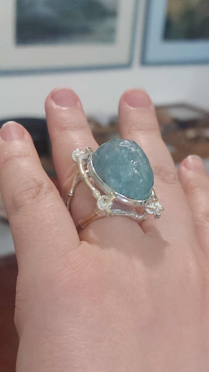 Бамбуковый перстень с аквамарином и бриллиантами от RadomskyJewelry