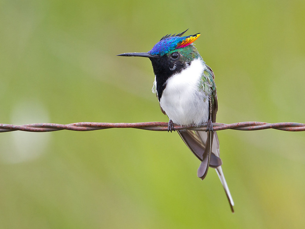 В этой статье вы увидите 5 самых маленьких птиц на земле. 1.Рогатый колибри Длина этой птички составляет всего около 12 сантиметров. Несмотря на свою миниатюрность, этот рогатый колибри очень красив. Подобно другим представителям своего семейства эта птица имеет привлекающую внимание яркую окраску и оперение, выкрашенное в медно-зеленый цвет. Передняя часть шеи и горло имеют бархатисто-черный цвет очень глубокого оттенка. При этом брюшко птички – белое. Обитает в Бразилии, в провинции Минас-Жейрас, предпочитая степной ландшафт. 2.Банановый певун Длина этой птички составляет около 11 сантиметров. При этом она имеет очень выразительную внешность: небольшой, загнутый вниз клювик, черную шапочку, ярко-желтые брюшко и грудь, и серую спинку. Так же как и колибри, банановый певун ест мелких насекомых, сок ягод и нектар, но в отличие от него не может зависать в воздухе на одном месте. Чтобы добыча нектара шла более успешно у птицы есть раздвоенный длинный язык, на котором еще имеются специальн
