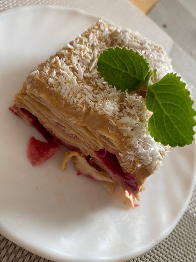 Ингредиенты: лаваша, вишни без косточек, варёной сгущенки, сметаны 20% Способ приготовления: Сначала смешать сгущенку со сметаной до однородной массы. Нарезать лаваш на тонкие полоски (4 плоски - каждая лепешка). На каждую полоску кладём вишенки, мне нравится выкладывать помногу, заворачиваем, выкладываем из трубочек первый слой в форме/на листе, обильно смазываем кремом, крема не жалеем, его много. Затем выкладываем следующий слой на 1 «поленце» меньше, промазываем, делаем горку. Когда все готово - отправляем в холодильник - пропитываться. Приятного чаепития! 👍