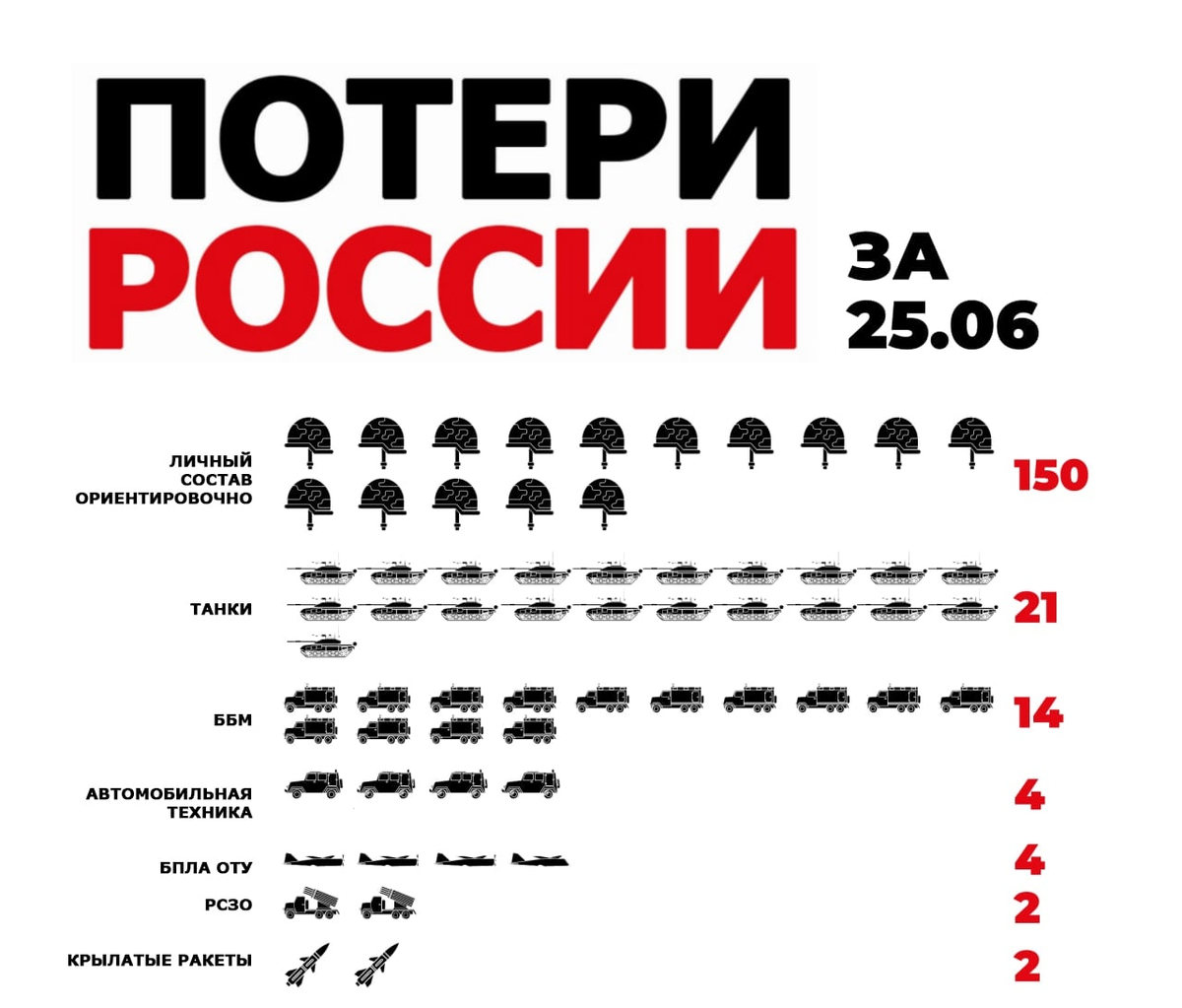 + 150 200-ых личного состава вс рф за 25 июня. Печаль беда), ну ничего, мы #своихнебросаем