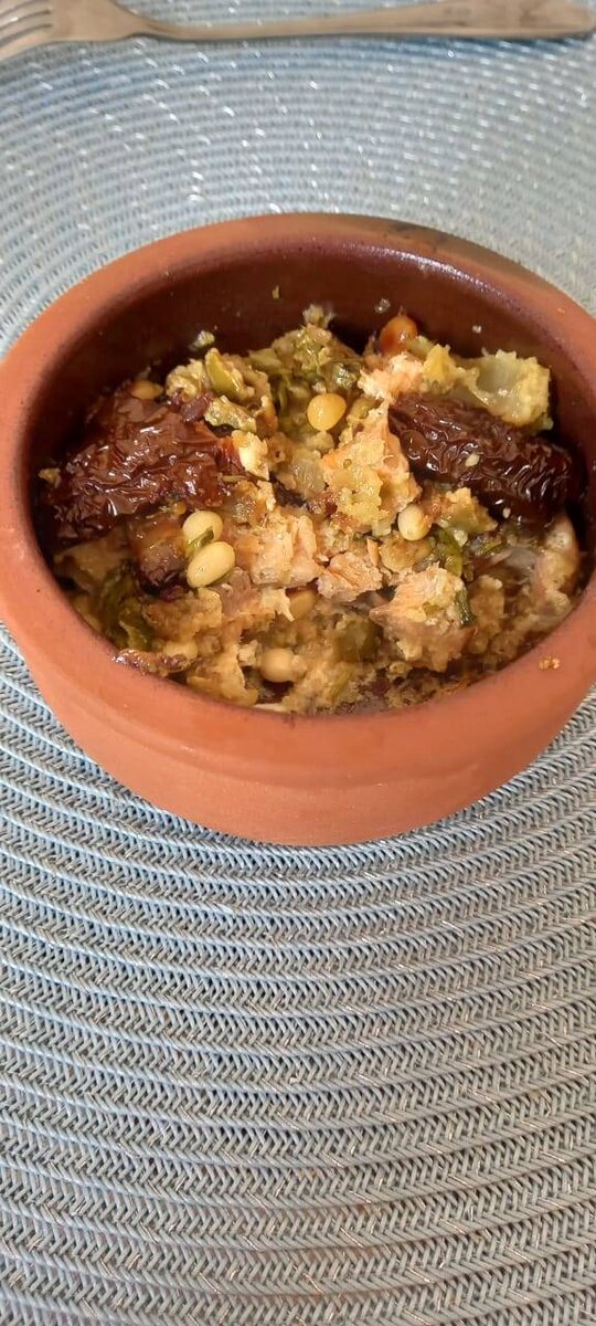 #летнееменю По мотивам рецнпта Юлии Высоцкой, но в оригинале немного другие ингредиенты Ингредиенты: горбуша порционная 4 брикетика, кинзы, кедровых орешков, изюма, луковица, чеснока, карри, соль, перец, вяленые томаты, сухари панировочные Способ приготовления: Рыбу разморозить, посыпать солью и перцем с двух сторон. Лук и чеснок мелко порезать, обжарить на 2 ст. л. масла от вяленых помидоров, оно оч. ароматное. Добавить кедровые орешки, карри, прогреть пару минут. Посыпать панировочными сухарями, еще прогреть. На дно формочек (у меня кеци керамические) лук с орешками, потом рыбу, посыпать изюмом, потом еще сверху лук с орешками. Поверх положить вяленые томаты и посыпать кинзой. Под фольгу в холодную духовку (т. к.у меня кеци керамические) на 180 град на 1 час. Приятного аппетита!