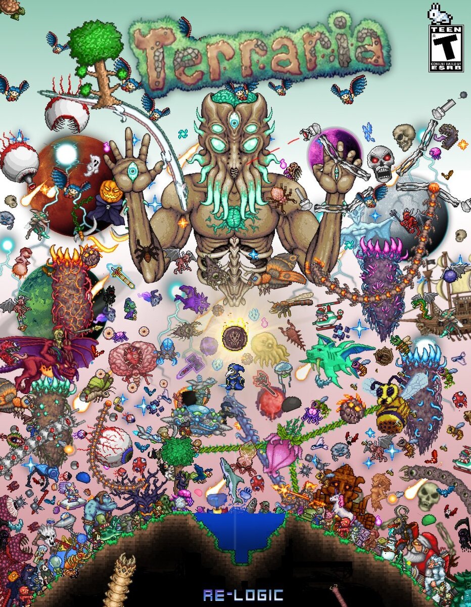 Огроомный привет всем читающим. Сегодня я расскажу вам "ТОП 30 смертей в Террарии" как вы уже как все наверное догадались о моём бесконечном выживании. (в этих статьях будет больше фото чем в других статьях, это сделано для того, чтобы передать вам все краски моего путешествия) 1. Создание мира Без лишних предисловий, я сделал самый обычный мир просто добавил к сиду 2022. Размер мира "средний". Сложность персонажа сделал на "классика", а сложность мира на "мастер". 2. Первые шаги Я появился в лесу и что же я стал делать? Нет не рубить дерево, а открывать сундук! Вы спросите "откуда он там?" я канешно не знаю. Что же там? Вау! Это-же мои любимые вещи с которыми я буду проходить всю игру. Ну конечно же я шучу эти вещи подложил туда я (если бы я вам не сказал вы бы никогда не догодались). Вы же не будете против если я буду ходить в моём любимом костюме и с питомцем :). Просто чтобы не смущать вас (и меня) деревянной бронёй, ну серьёзно кто придумал её спрайт? 3. Путешес